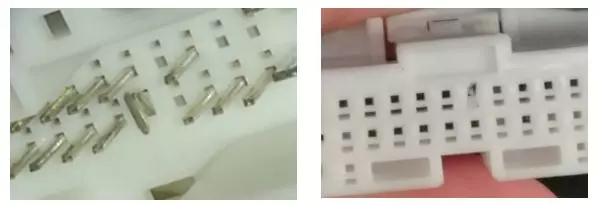 圖3汽車連接器的護(hù)套對接導(dǎo)致的端子彎折