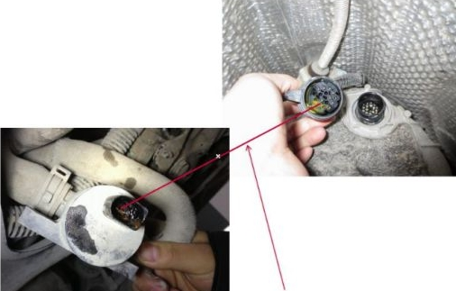 下圖為變速箱油冷卻閥N509插頭滲防凍液,防凍液沿N509插頭(1)號線進入變速器電腦J217插頭(7)號導(dǎo)致故障(液體虹吸現(xiàn)象)