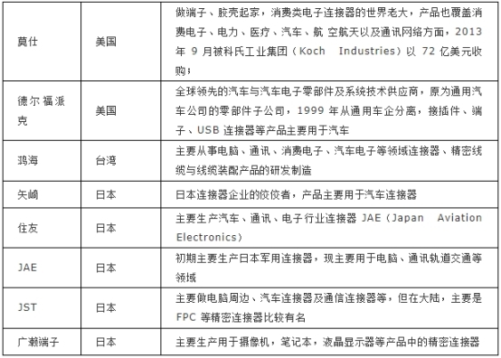 表1首要的連接器廠家